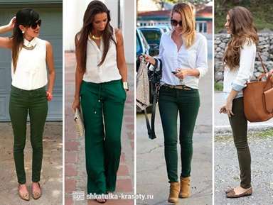 Брюки или джинсы зеленого цвета незаменимы в гардеробе, ведь: