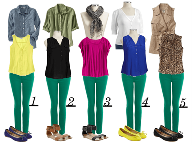 Цветовые сочетания такие же, как и для любых других зеленых брюк.