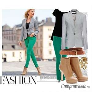 Задаваясь вопросом, с чем носить женские зеленые брюки, в первую очередь надо определить цель. Для вечерней прогулки, на занятия, на шопинг или на работу – от этого будет зависеть цвет брюк, подходящий верх и аксессуары.