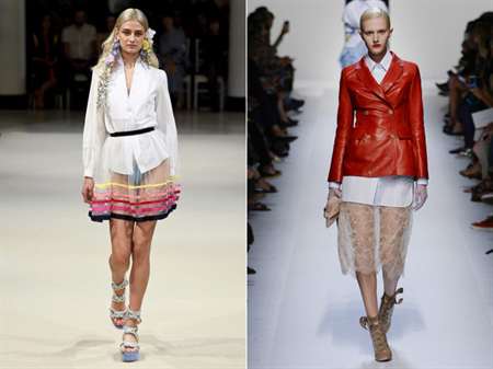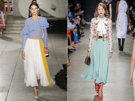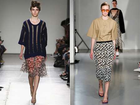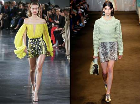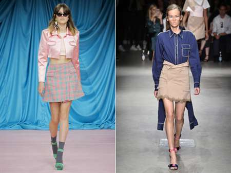С чем носить: Дизайнеры Ermanno Scervino и Alexis Mabille предлагают сочетать юбку с длинной рубашкой, а Christian Dior одел своих моделей в смелые боди.