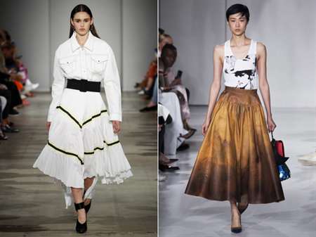 Эта короткая юбка, расширенная снизу, вернулась из прошлого и снова захватила женские сердца. Дизайнеры одежды предлагают для этого лета модели без особого декора с кроем на два борта, с ненавязчивой кружевной отделкой. Модный дом Ellery пошили юбки с разрезом по середине с скругленными краями.