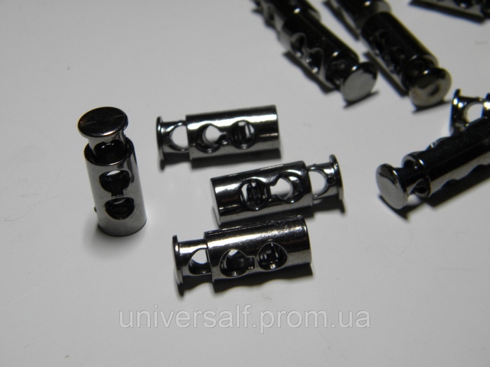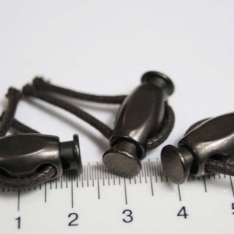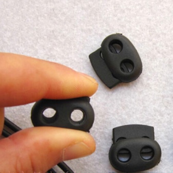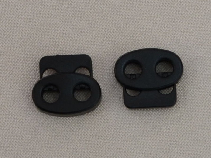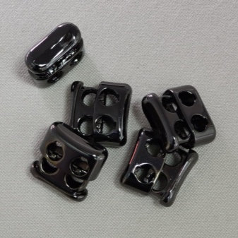 У пластиковых изделий одно отверстие, сквозь которое и продевается шнурок. Внутри приспособления расположен маленький, но прочный механизм, благодаря которому обеспечивается продолжительная эксплуатация изделия. Главная задача – зафиксировать элемент одежды или обуви, затянуть капюшон, рукав. К основным достоинствам можно отнести простоту в применении, длительный срок службы, а также прочность к износу и стиркам.