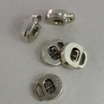 - Качество покрытия также имеет значение. Если это пластиковая фурнитура, на ней не должно быть царапин. Что касается металлических, их лучше использовать вдали от повышенной влажности, поэтому для зимней одежды или обуви такие фиксаторы зачастую не подходят. Исключением являются лишь те, которые имеют антикоррозийное покрытие.