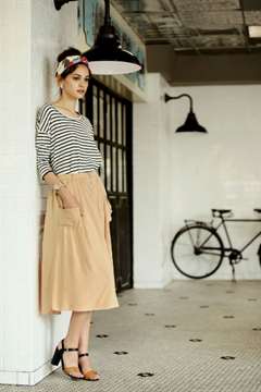 Стилистика образов, которые включают в себя юбку ниже колена, также вариативна. Модные луки с юбкой миди помогут раскрыть романтическую натуру, нарядить в стиле ретро, создать образ деловой бизнес вумен или разнообразят ежедневные гарнитуры casual направленности.