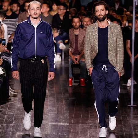 Актуально сочетание повседневной одежды с деталями спортивных костюмов. Например, стильно выглядеть будет сочетание джинсов с спортивной ветровкой или тренировочные штаны с свитером. Примеры представлены на фото.