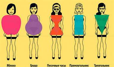 Характерной чертой этого типа фигуры являются худые ноги, округлённые плечи и невыраженная талия. Объём талии превышает охват плеч. Основная проблема по типу фигуры яблоко – невыраженная талия. Поэтому необходимо визуально удлинить силуэт и акцентировать внимание на области декольте и ногах.