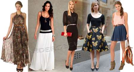 Не забывайте, что для того, чтобы подчеркнуть талию, необходимо использовать пояс. Отличном вариантом станут юбки-колокольчики и платья-тюльпаны, которые придадут объём бёдрам.