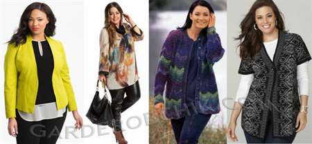 Выбирайте трикотажные вещи, которые облегают грудь и свободно висят на талии или же пиджаки с длиной не выше бёдер. Все украшения должны располагаться в области лифа. Что касается ткани, то лучше выбирать лёгкий и струящийся материал.