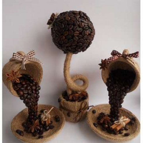 Часто в офисах на рабочих столах можно заметить разного рода безделушки. Особенно популярны денежные деревья или сувениры с бисера. У многих на кухне есть сувениры со шпагата и кофе. Материал для их изготовления не столь дорого стоит, а продать готовое изделие можно за неплохие деньги. Учитывая, что такое занятие расслабляет и приносит доход, можно смело начинать создавать свои особенные вещи.