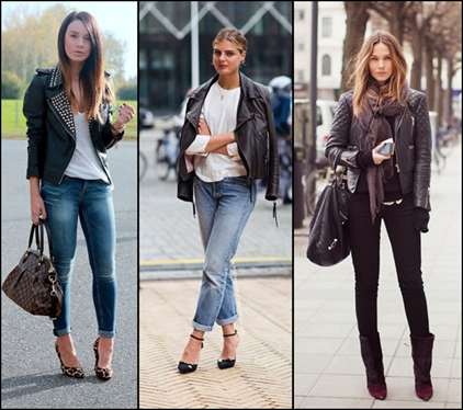 Куртка, изготовленная из натуральной кожи с подкладкой, действительно неплохо защищала от холода и предохраняла от повреждений байкера во время падений его байка. Эту куртку, с чем носить фото отлично показывает, когда используется вариант классический, тот который был в ходу с самого начала. Но сейчас куртка становится трендом сезона и существует большое разнообразия того с чем ее носить.