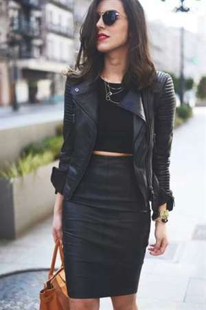 - особенно выглядит великолепно обтягивающая юбка ниже колен в сочетании с красной косухой;
